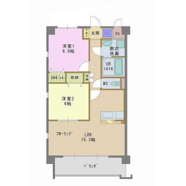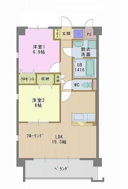 | 間取り | 2LDK(LDK15.3 洋6.9 洋6) | 主要採光面 | 南 |